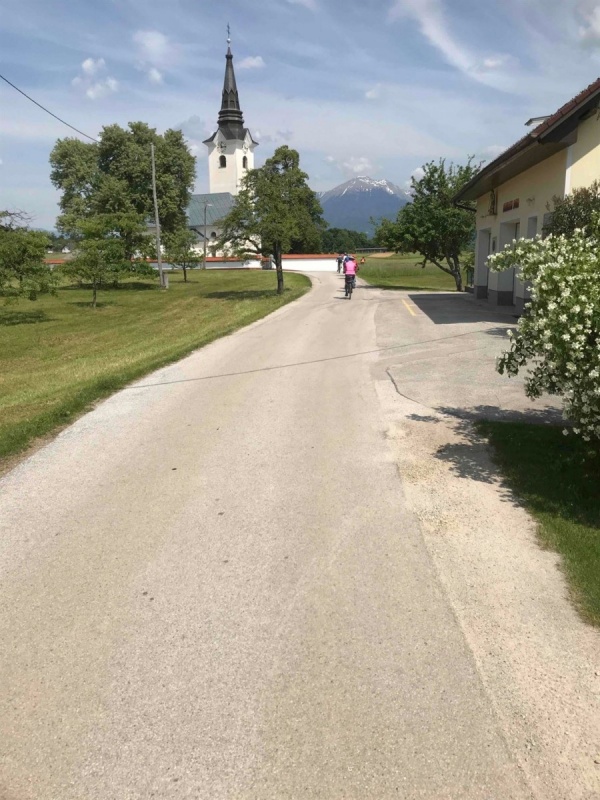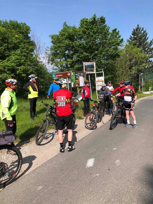 To pot nas je Zvone peljal na kolesarski izlet na Brezje preko Leš. S tem smo pridobili sedem km idealne poti za kolesarje z zelo malo prometa in nekaj lepimi klanci. Ob prekrasnem vremenu se nas je zbralo rekordnih dvanajst. Pogrešan je bil le Oti P. Na novo, po daljšem času, se nam je pridružil Jožko Š. z novim slovenskim e-kolesom. Pred leti je bil tudi naš vodja.