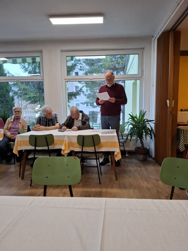 Predsednik društva mag. Stevo Ščavničar je podal poročilo o delu v preteklem letu. Poudaril je, da je društvo uspešno uresničilo načrtovane aktivnosti, izvedena so bila tudi potrebna investicijska vzdrževalna dela. Posebej je izpostavil predčasno odplačilo posojila za fasado doma ter izdajo publikacije o zgodovini in delovanju društva, ki jo je prejel vsak član ob vplačilu članarine za 2026. Razveseljiv je podatek, da se po ponovno povečuje število članov. Velik del dejavnosti temelji na prostovoljnem delu članov društva, zlasti v projektu »Starejši za starejše«, kjer člani opravijo veliko dragocenih prostovoljskih ur. Vrednost prostovoljnega dela članic in članov društva v letu 2025 je bila ocenjena na približno 36.500 evrov. Predsednik se je ob tej priložnosti zahvalil vsem, ki so s svojim delom in sodelovanjem prispevali k temu, da je bilo leto 2025 z načrtovanimi projekti uspešno zaključeno.