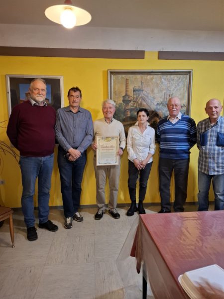 Za dolgoletno delo v kegljaški sekciji, kjer vodi žensko kegljaško ekipo in sodeluje pri organizaciji tekmovanj na društvenem, občinskem in pokrajinskem nivoju. - Janez Pavel Komel – listina Častni član DUJ