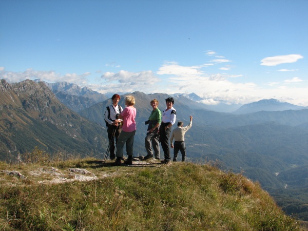 Na robu gozda se je odprlo travnato pobočje prav do vrha Malega Karmana. Na sami špici gore se je šopiril zvonik cerkvice. Ko si se naveličal njegove bahavosti, si stegnil roko in ga zakril že s samim palcem, ali pa si pogled usmeril drugam. Pot do njega je bila še dolga in strma. Vsi smo jo premagali in na vrhu uživali v čudovitem razgledu po gričevju Beneške Slovenije, furlanski ravnici vse tja do morja in po vrhovih Julijskih alp in daljnih Dolomitov. Na samem vrhu je Marta sprejela sporočilo, da je postala ponovno babica. Od veselja bi v tistem trenutku gostila vse pohodnike, a ni bilo gostilne daleč naokoli.