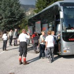 V prebujajočem se jutru smo se odpeljali z Jesenic preko Trbiža po Kanalski dolini do Humina in naprej do Montenarsa oziroma zaselka Sunville (650m), kjer smo začeli z vzponom na Mali Karman (1372m). Občudovali smo šoferja, kako spretno je vozil po strmi in ozki cesti v strm hrib. Zapeljal nas je prav do začetka planinske poti nad zaselkom Sunville. Le zaradi meter ozke stezice ni nadaljeval vožnje naprej. Šoferja smo pustili pri avtobusu, vseh ostalih 40 pohodnikov pa je zagrizlo v strm breg skozi mešani listnati gozd. Množica kostanjev na tleh nas je izzivala, da jih poberemo, a smo vabljivo ponudbo odložili za povratek. Le kdo bo tako nor, da bo nosil kostanje še na goro in potem nazaj.