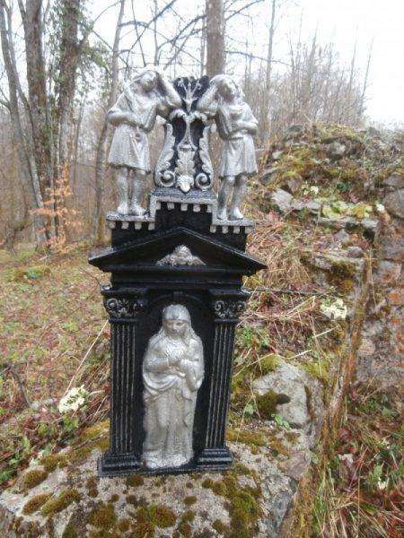 V gozdu se je slišalo kukanje kukavice; pregovor pravi: ko prvič na pomlad slišiš kukavico, je dobro novce pri sebi imet, da bo v žepu celo leto ta žvenket. Po dobri uri hoda po makadamski poti so nas table usmerile proti lovski koči na Kleč. Od tod je pot zavila v gozd in postala bolj strma in seveda tudi blatna zaradi dežja. Nekaj pohodnikov je tu zavilo na Planino, kjer je bila pot lažja, a malo daljša. Vsi smo v dobrih dveh urah prišli do planinskega doma na Mirni gori (1047 m). Dom je res dobro oskrbovan in ga. Jožica se nas je kar malo ustrašila, saj ni pričakovala, da bomo v takem vremenu sploh prišli. Hitro in kvalitetno sta nas z možem postregla z domačim jabolčnim zavitkom, z domačo zmajevko in viljamovko. Ob domu so bile ruševine cerkvice sv. Frančiška, ki je zavetnik vremena. Žal nam to pot ni kaj dosti pomagal. Cerkveni zvonik je sedaj preurejen v razgledni stolp, od koder je ob jasnem vremenu razgled po Beli krajini do Metlike in proti Hrvaški, vse do Zagreba. Mi smo lahko opazovali le bližnjo okolico.