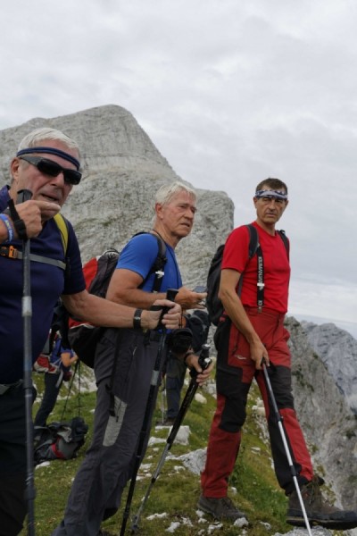 V dolino smo se spustili po južni strani Mojstrovke, ki zaradi obilice grušča na gladkih skalah zahteva precej previdnosti. V zadnjem spustu sta se Brane in Rajko odločila za »šodranje«, ostali pa za normalno vrnitev po markirani poti na sedlo. Po naporni turi smo se za nagrado ustavil najprej pri Tonki in nato še pri Danici na Dovjem.