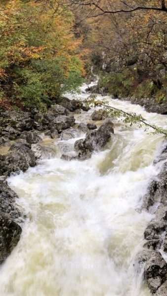 Ko smo krenili z Ukanca proti slapu Savica, nam je voda ponovno prekrižala načrte. Zaradi poplavljenega cestišča smo se ponovno obrnili in šli nazaj do ceste, si privoščili udobje prevoza z avtobusom in se popeljali do slapa Savice, ki se je spuščal v vsej svoji veličini in lepoti.